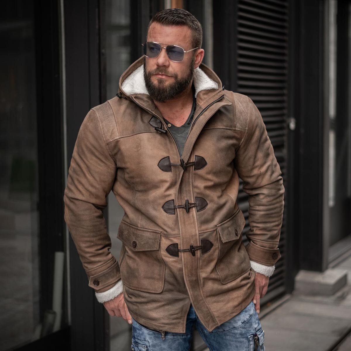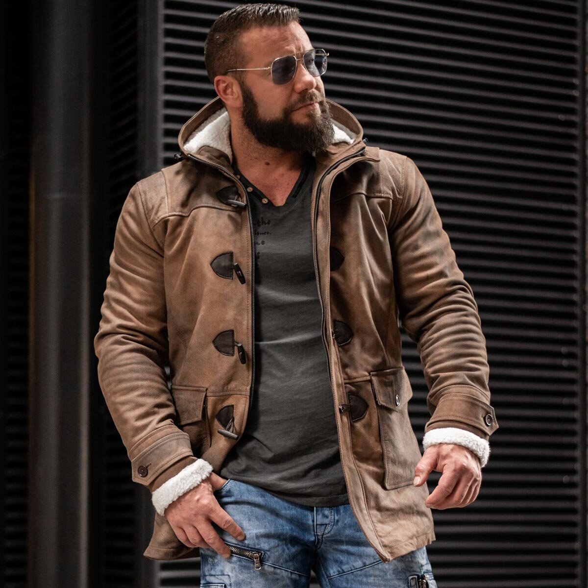 Dette outfit er til manden, der ikke går på kompromis. Her forenes den klassiske frakke med moderne, industrielle detaljer for et look, der fungerer både dag og aften.